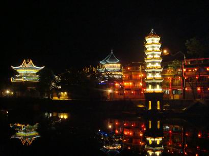 以上这些景点只当是介绍一下,不建议去。那些专门是为旅行团所准备的,自助的就免了,在城里逛逛都一样。一般自助游在凤凰主要游览沱江风光带,两岸吊脚楼群,古香古色,还有令人难忘的夜景,