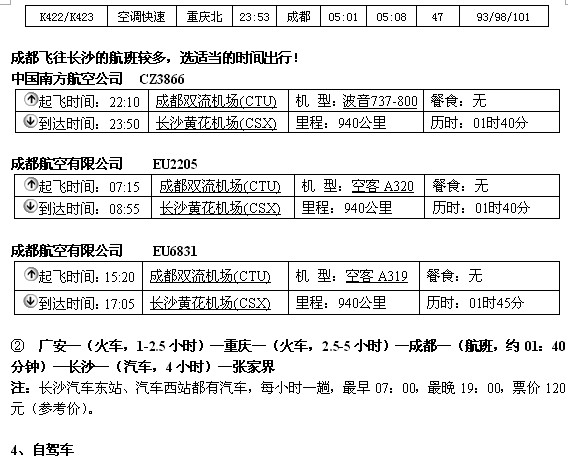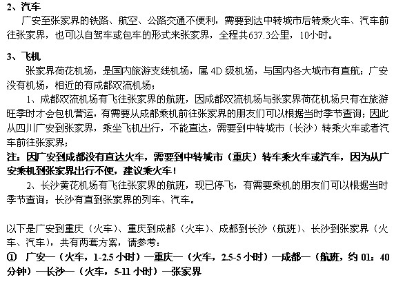 ① 广安—(火车,1-3小时)—重庆—(火车,约8-19小时)—怀化—(火车,5-11小时)—张家界