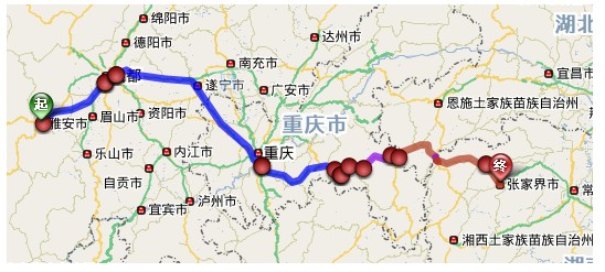 (2)雅安至张家界导航详细自驾车路线
