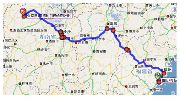 4、沿福银高速行驶522.2公里(经闽赣收费站(邵武),赣闽收费站(黎川)),从宜春/吉安/鹰潭/长沙/广州/上海出口离开,朝宜春/长沙/吉安/广州方向,进入沪昆高速