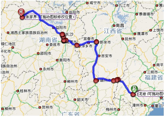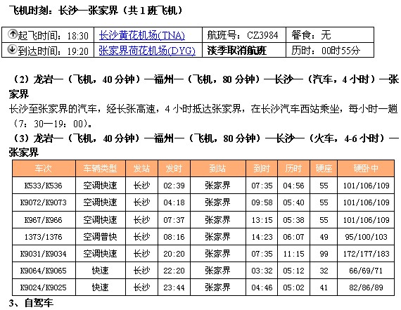 (1)龙岩—(火车,15小时)—株洲—(火车,6-7小时)—张家界