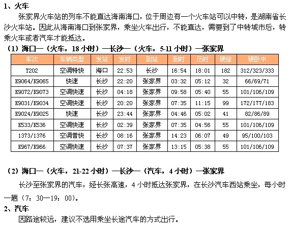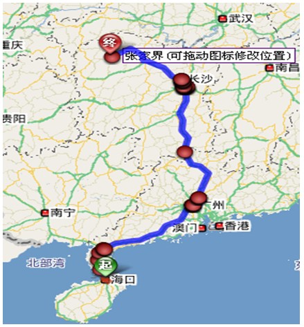 (1)海口至张家界导航详细自驾车路线