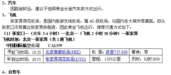 (1)张家口—(火车3-4小时)—北京(火车22-23小时)—张家界