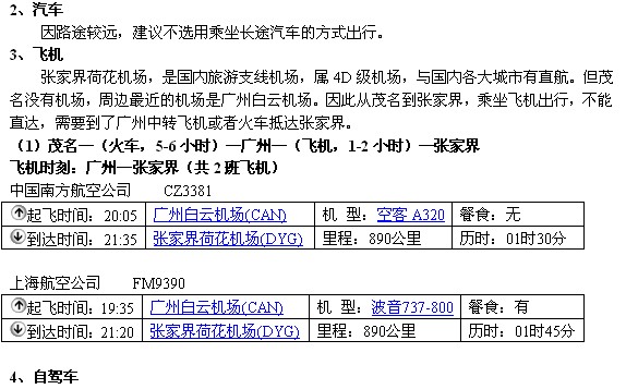 (1)茂名—(火车,5-6小时)—广州—(火车,13-14小时)—张家界