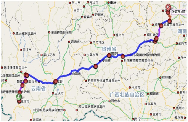 (1)临沧至张家界导航详细自驾车路线