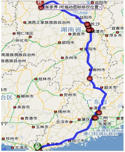 6、沿京珠高速/G4行驶601.5公里(经广东京珠北粤北收费站),从株洲北/韶山/邵阳出口离开,遇第1个岔口走韶山/娄底/邵阳/昆明方向,第2个岔口走韶山/邵阳/昆明/娄底方向,第3个岔口向左,进入上瑞高速