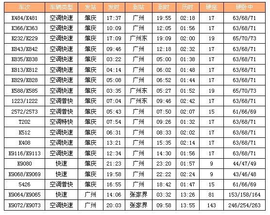 张家界火车站的列车不能直达广东肇庆,因此从肇庆到张家界乘坐火车出行,需要到周边最近的火车站就是广州火车站转火车或者飞机才能抵达张家界。