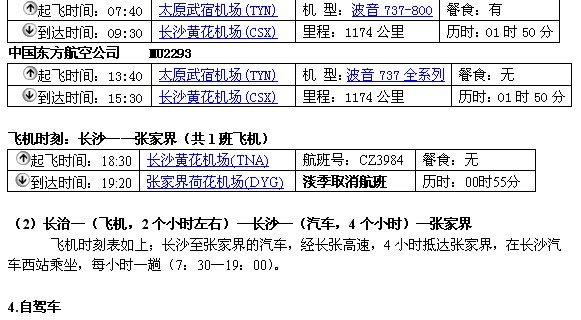 张家界荷花机场,是国内旅游支线机场,属4D级机场,与国内各大城市有直航。长治的王村机场没有航班直达张家界或长沙。可通过周边最近的太原武宿机场中转至长沙。然后在长沙转机或汽车至张家界。