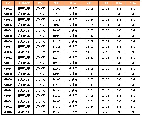 列车时刻:广州—长沙