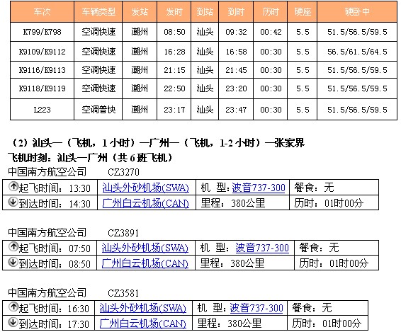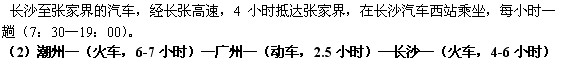 (2)潮州—(火车,6-7小时)—广州—(动车,2。5小时)长沙—(汽车,4小时)—张家界