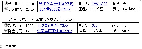 (注:长沙汽车西站每隔一小时就有一班发往张家界的高速大巴,07:30—19:00)