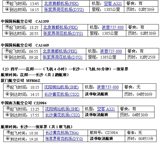 航班时间:北京——张家界(共3个航班,每天都不同)