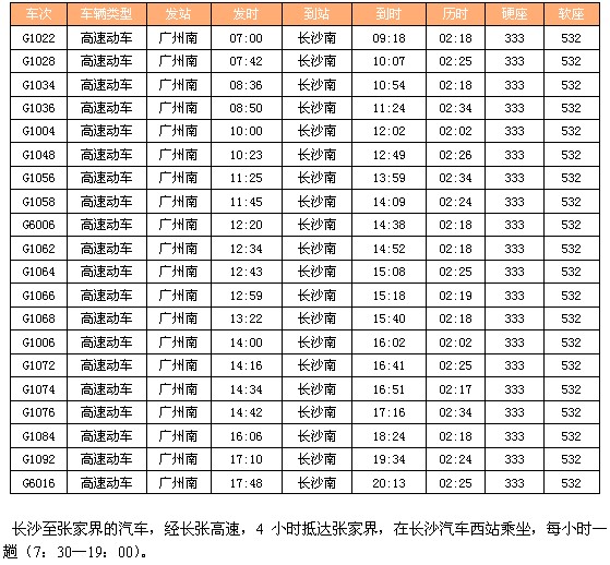 列车时刻:广州—长沙(高铁共54趟火车)