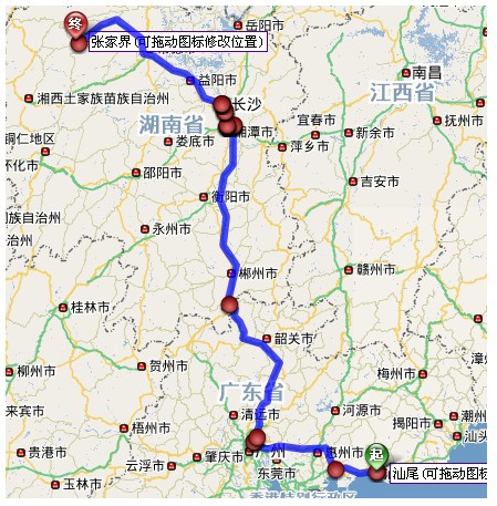 (1)汕尾至张家界导航详细自驾车路线