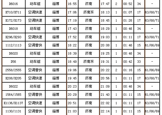 列车时刻:淄博——郑州(共6趟火车)