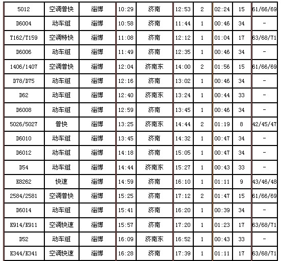 列车时刻:淄博——济南(共49趟火车)