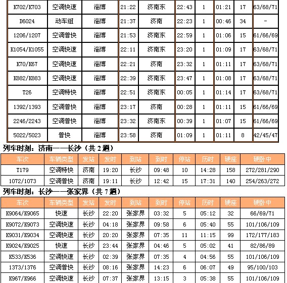 列车时刻:郑州——张家界(共4趟火车)