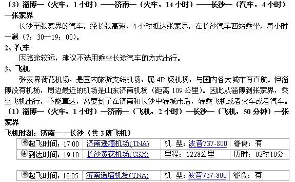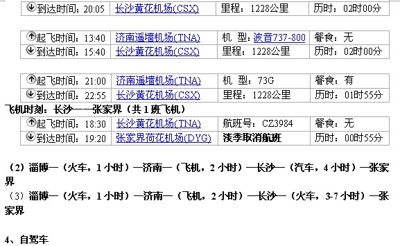 (2)淄博—(火车,1小时)——济南—(火车,14小时)——长沙—(火车,3-7小时)—张家界