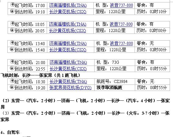 (2)东营—(火车,3小时)—济南—(火车,10-16小时)—长沙—(汽车,4小时)—张家界