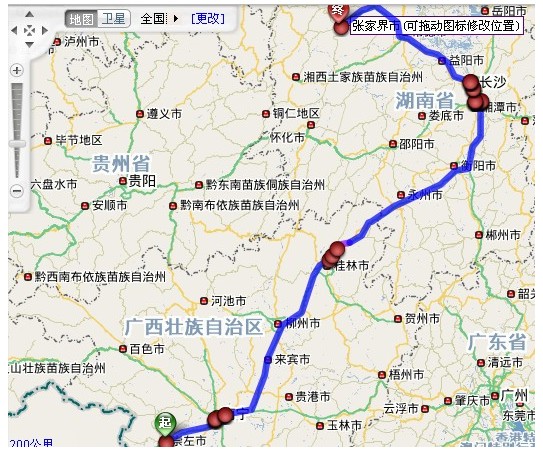 4、沿柳南高速一直向前行驶384.7公里,从灵川/湖南出口离开,左转进入G322