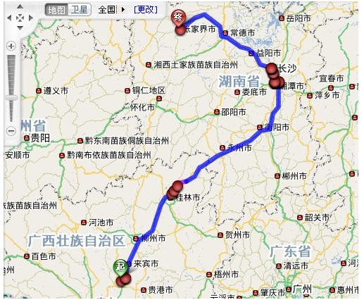 (3)来宾至张家界地图(缩略图)