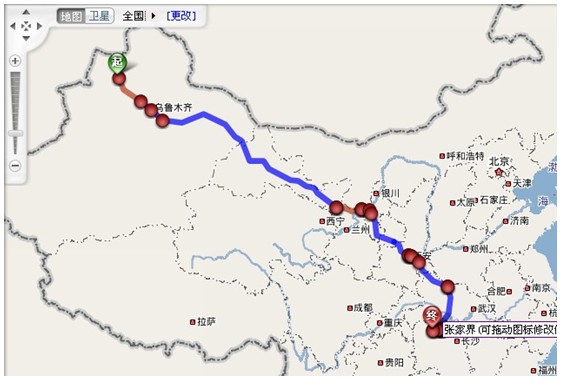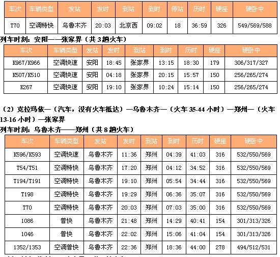 (1) 克拉玛依—(火车37小时)—安阳—(火车15-18小时)—张家界