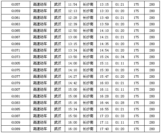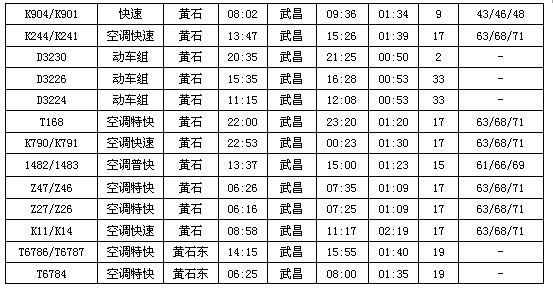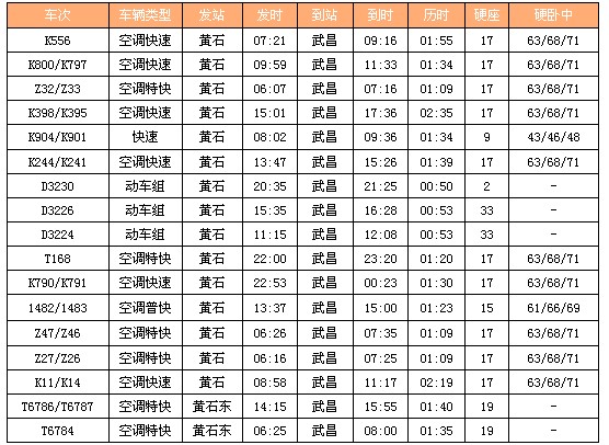 列车时刻:黄石——武昌(共17趟火车)