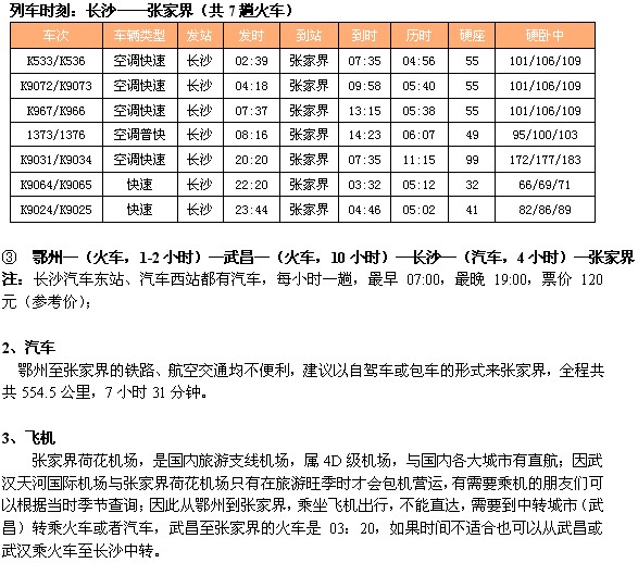 鄂州—(火车,1-2小时)—武昌—(火车,10小时)—张家界