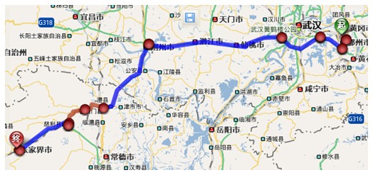 (2)黄冈至张家界导航详细自驾车路线