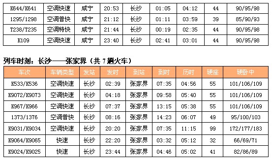 以下是咸宁到武昌、武昌到张家界的火车时刻表,共有两套方案,请参考: