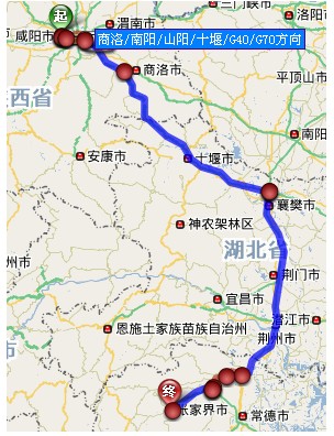 5. 咸阳至张家界导航详细自驾车路线