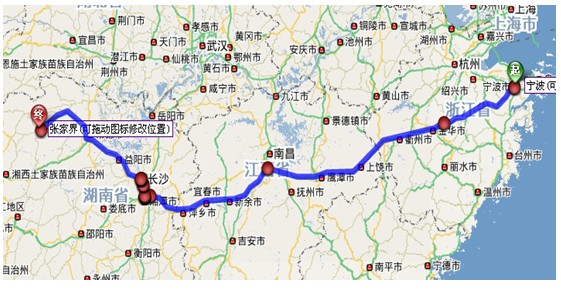 (1)宁波至张家界导航详细自驾车路线