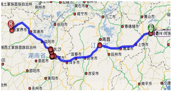 (1)衢州至张家界导航详细自驾车路线