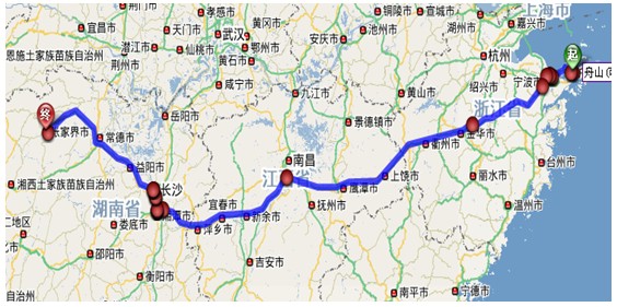 (1)舟山至张家界导航详细自驾车路线