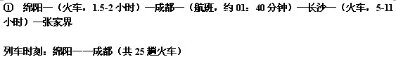 ① 绵阳—(火车,1.5-2小时)—成都—(火车,约21小时)—长沙—(火车,5-11小时)—张家界