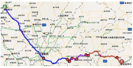 2、沿S205一直向前行驶324.8公里,从南川/綦江/遵义/贵阳出口离开,朝南川/G65方向,进入渝湘高速