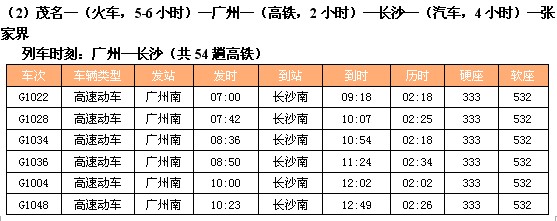 列车时刻:茂名—广州(共14趟火车)—张家界(共7趟火车)