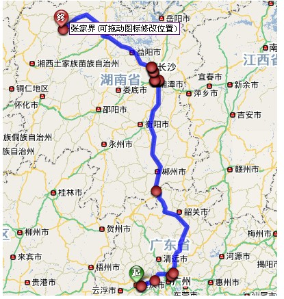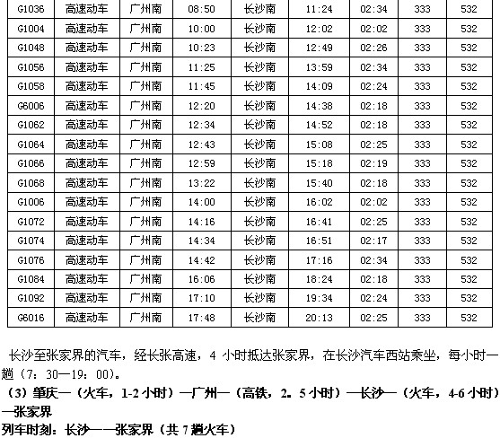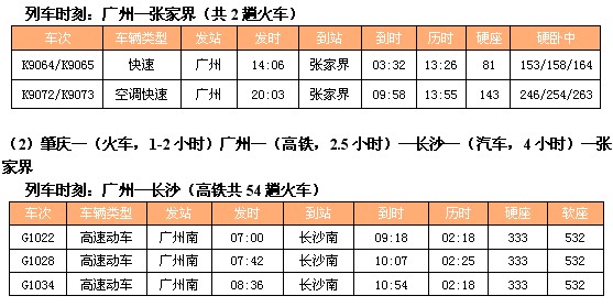 (1)肇庆—(火车,1-2小时)—广州(火车,13-14小时)—张家界