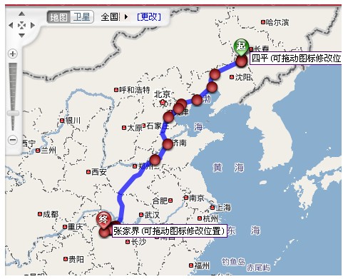 (2)四平至张家界导航详细自驾车路线