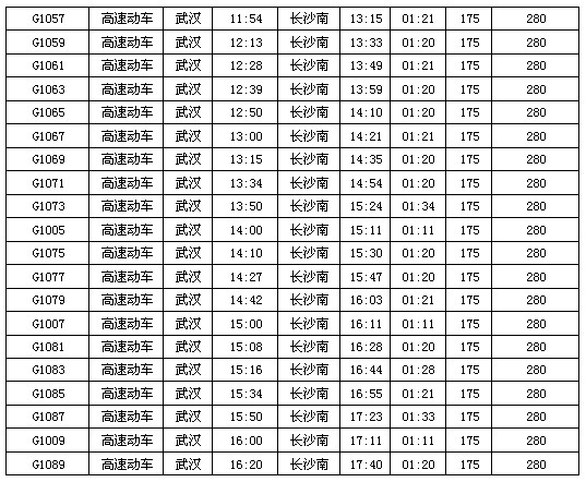 列车时刻:武昌——长沙(建议乘列车共有45趟火车)