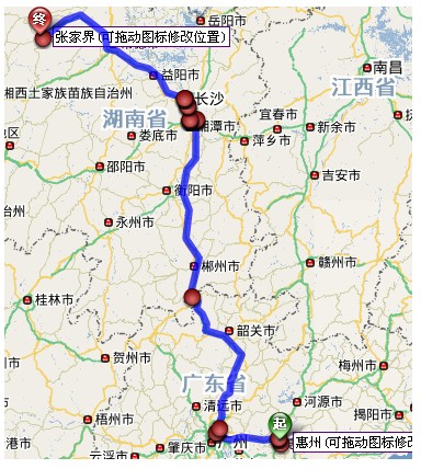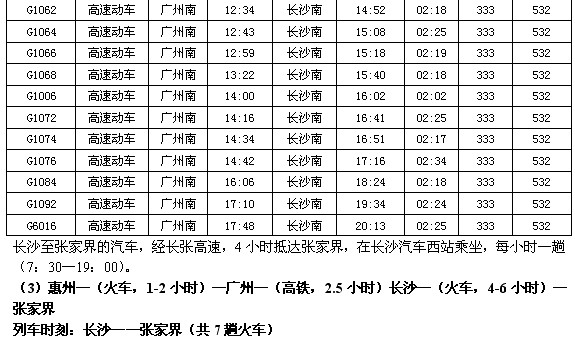 (1)惠州—(火车,1-2小时)—广州—(火车,13-14小时)—张家界